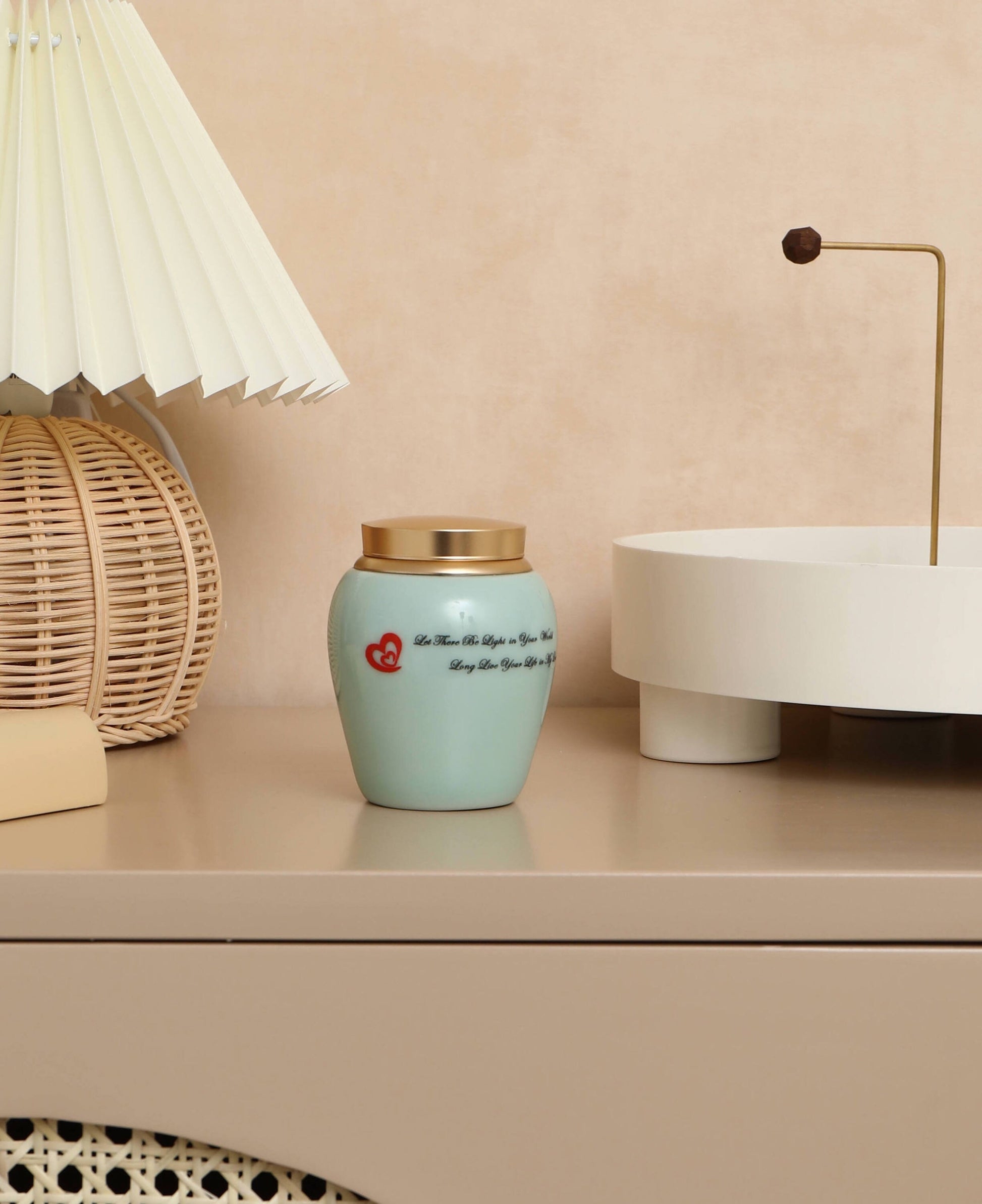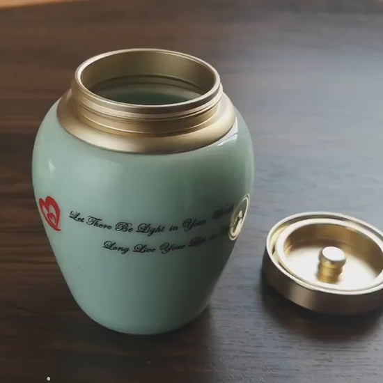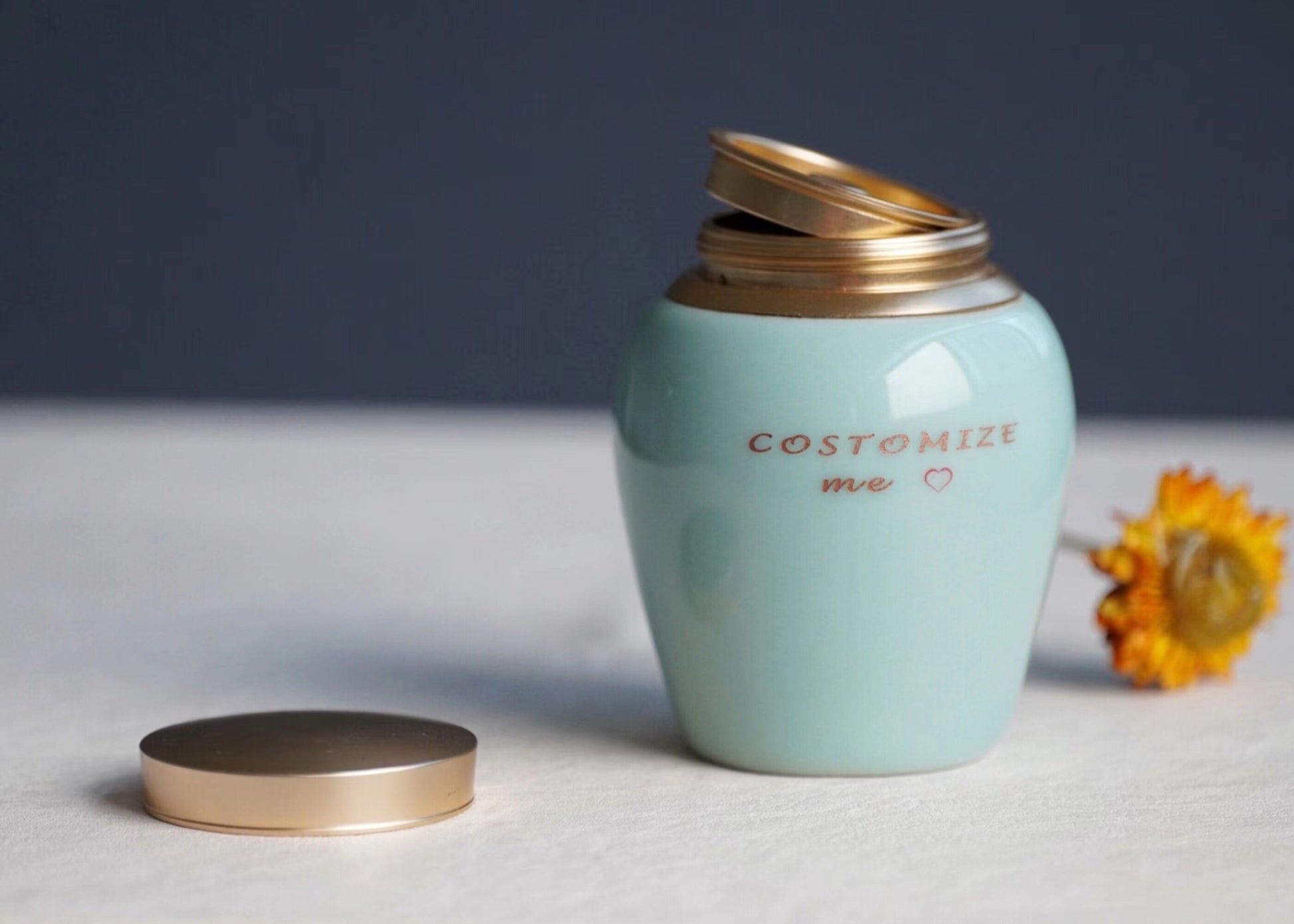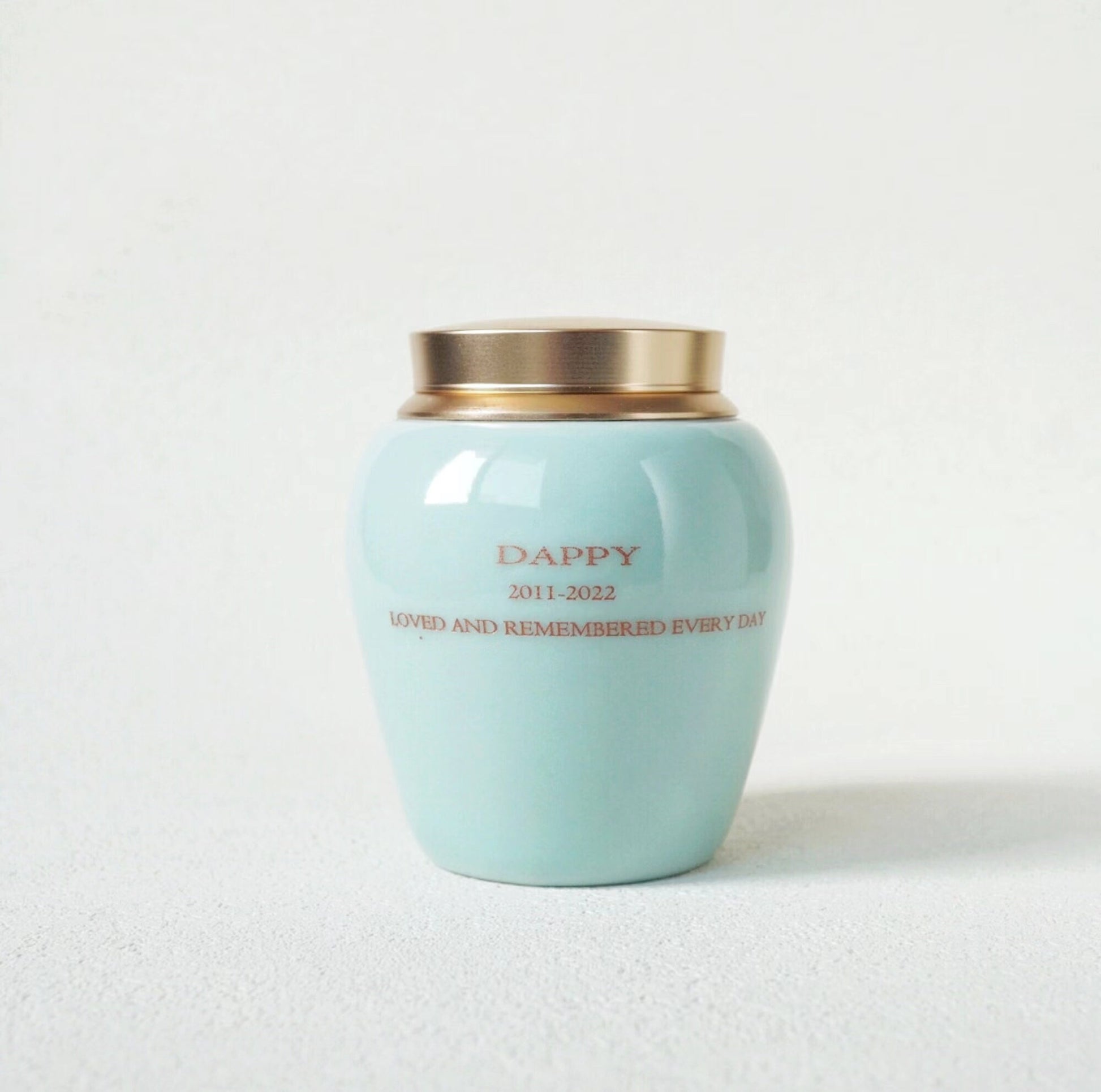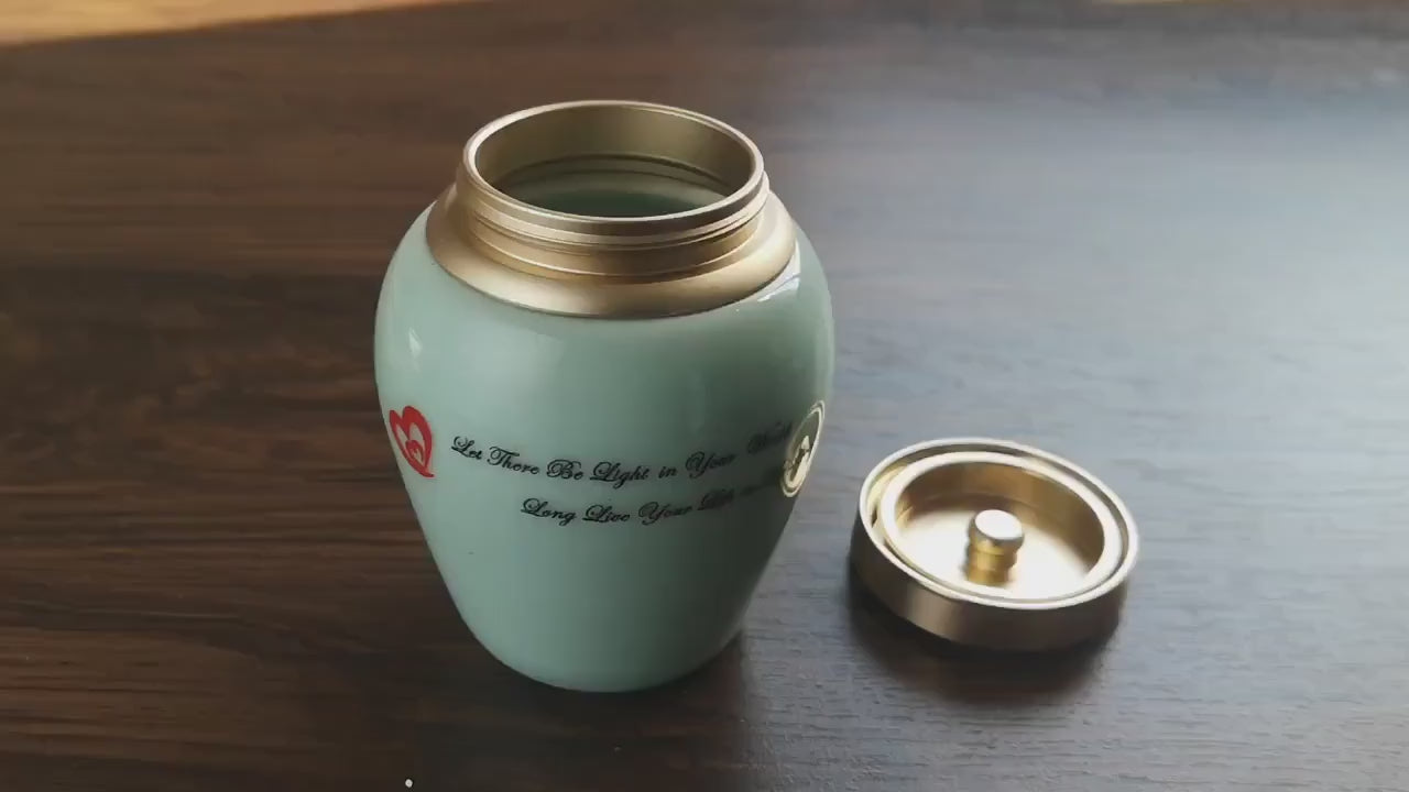 Hand madeUnique glaze colorsoft and moist glaze,Celadon is the only ceramic that has been selected in the United Nations intangible cultural heritage.This handmade pet urn is made of Ceramic and wood are perfect for your small pet, cat, dog, rabbit, gerbil or other animal.
