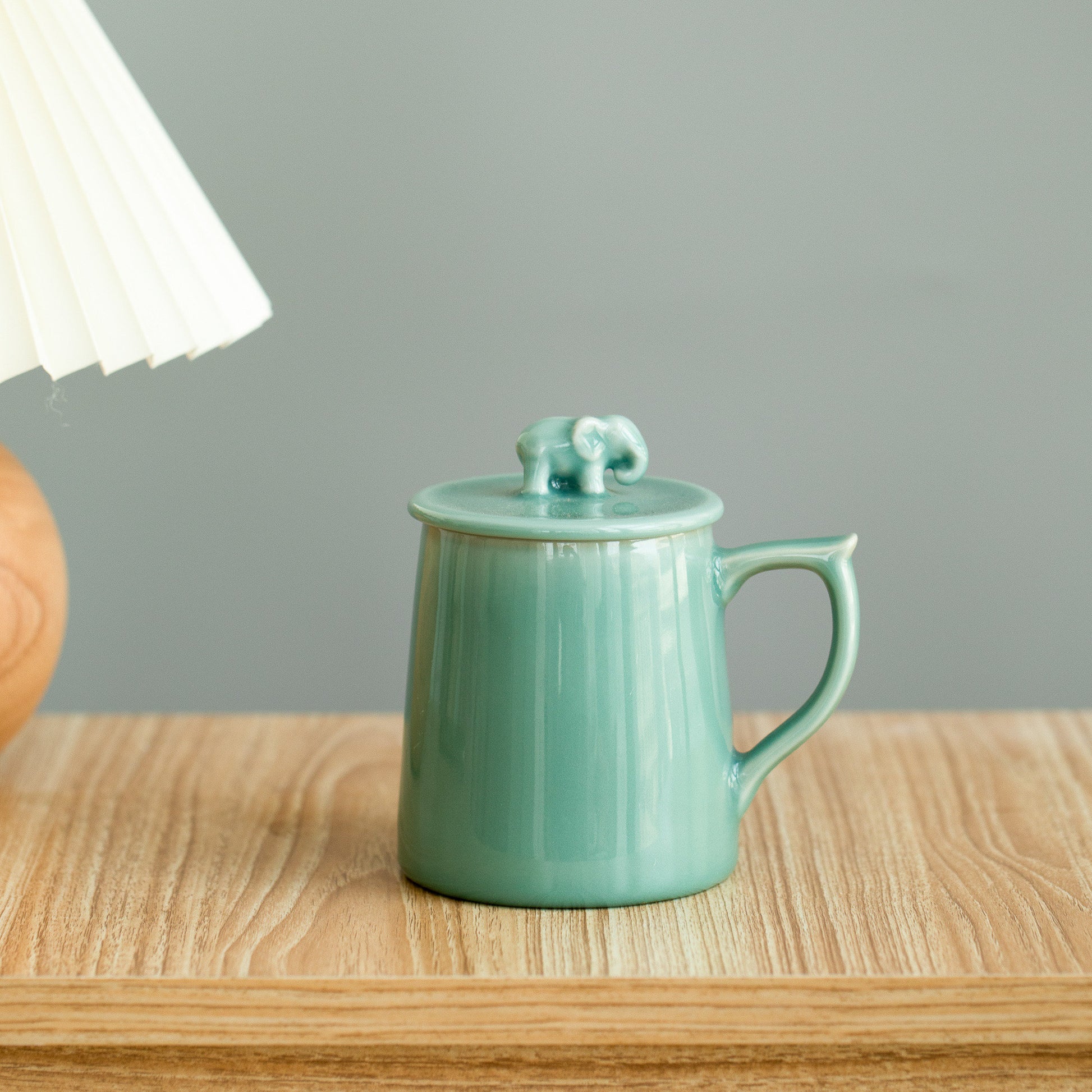 Elephant Coffee Mug -Ceramic Tea Mugs with Hand Printed Designs Large Handmade Cup