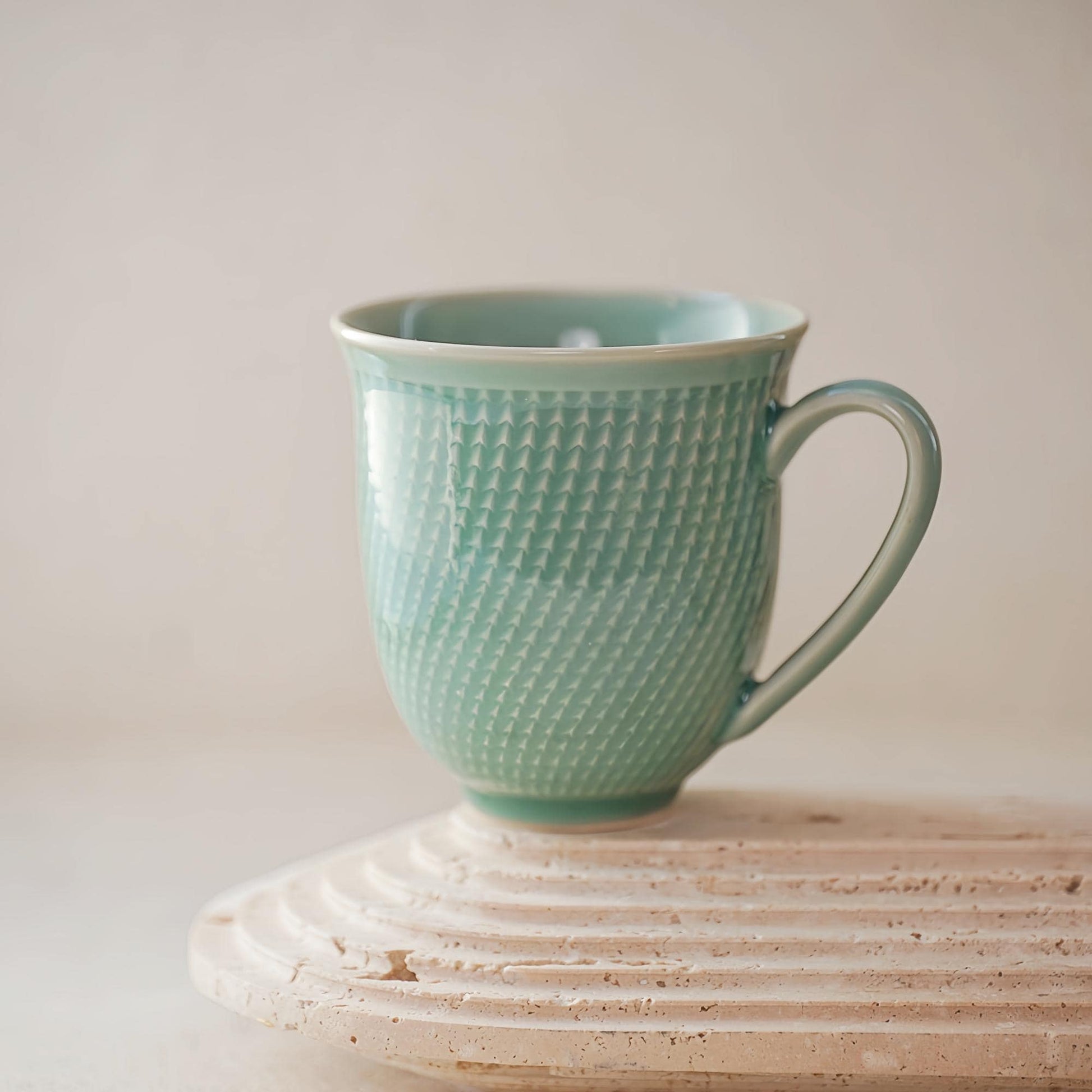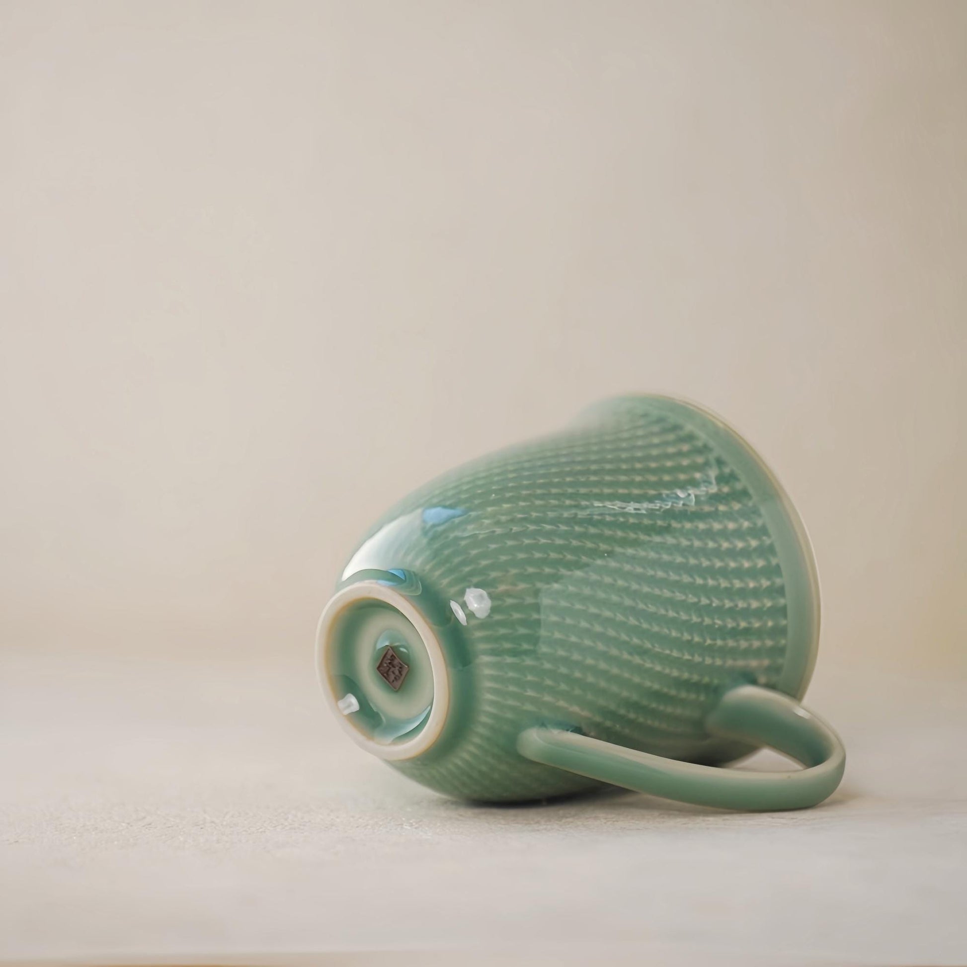 This 300ml tea mug, with its unique textured design and soothing jade green glaze, embodies simplicity and elegance. Crafted in the historic region of Longquan, renowned for its centuries-old celadon ceramics, this mug is perfect for those who value functionality, beauty, and cultural heritage in their everyday rituals.