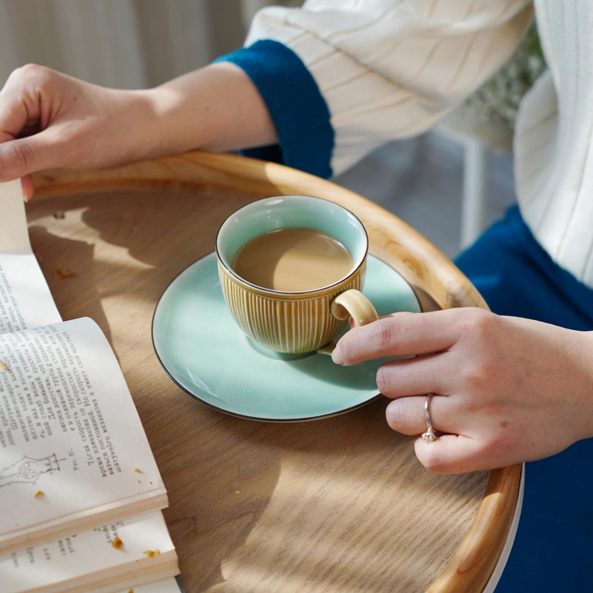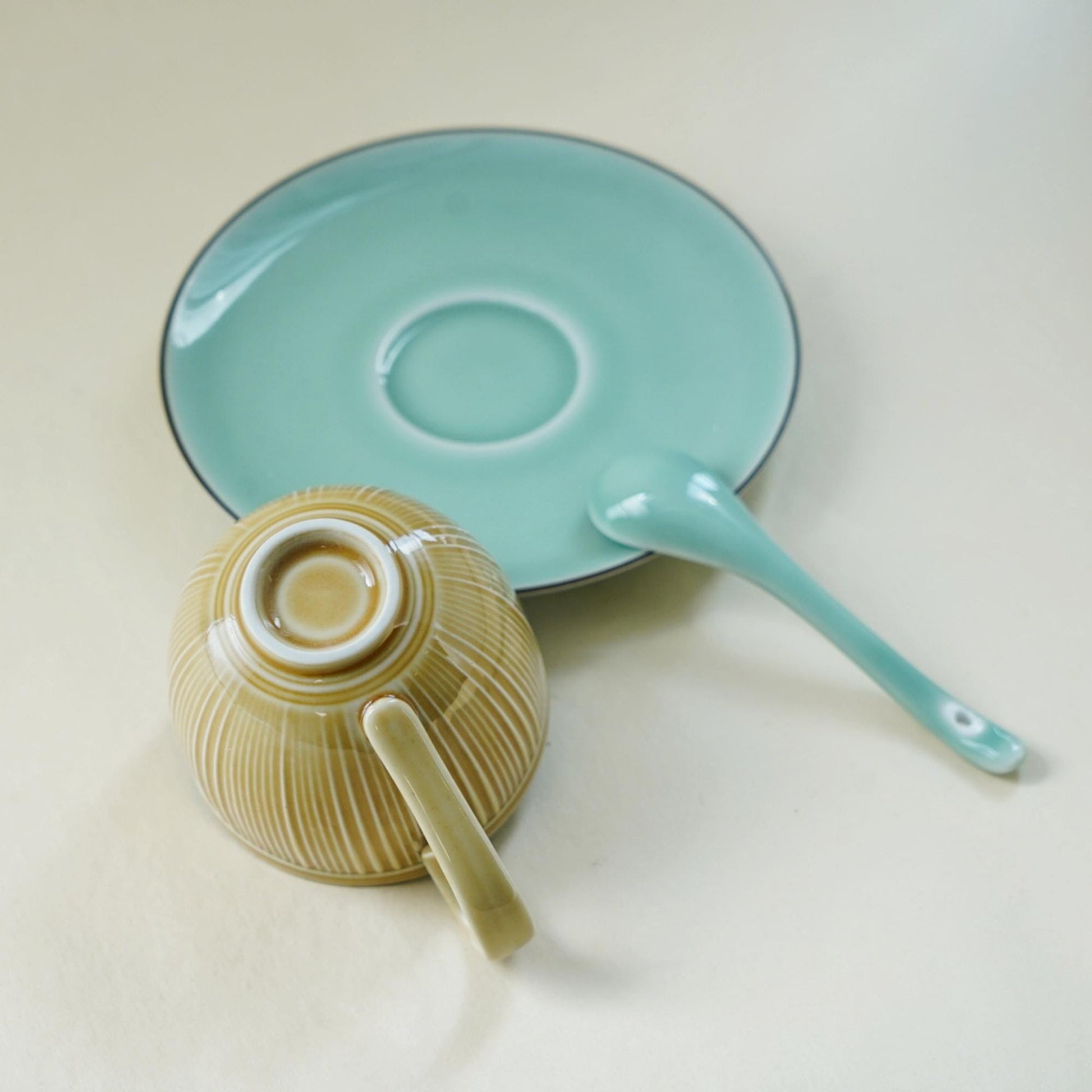 Discover mindful luxury with our handcrafted Longquan Celadon coffee cup set, thoughtfully designed in the calming spirit of the Wabi-Sabi philosophy—embracing simplicity, subtle beauty, and authenticity. Available in serene Jade Blue or warm Amber Yellow, this minimalist ceramic set includes a gracefully contoured 170ml (5.75oz) cup, matching saucer, and a delicate spoon, perfect for elevating your daily coffee or tea experience.