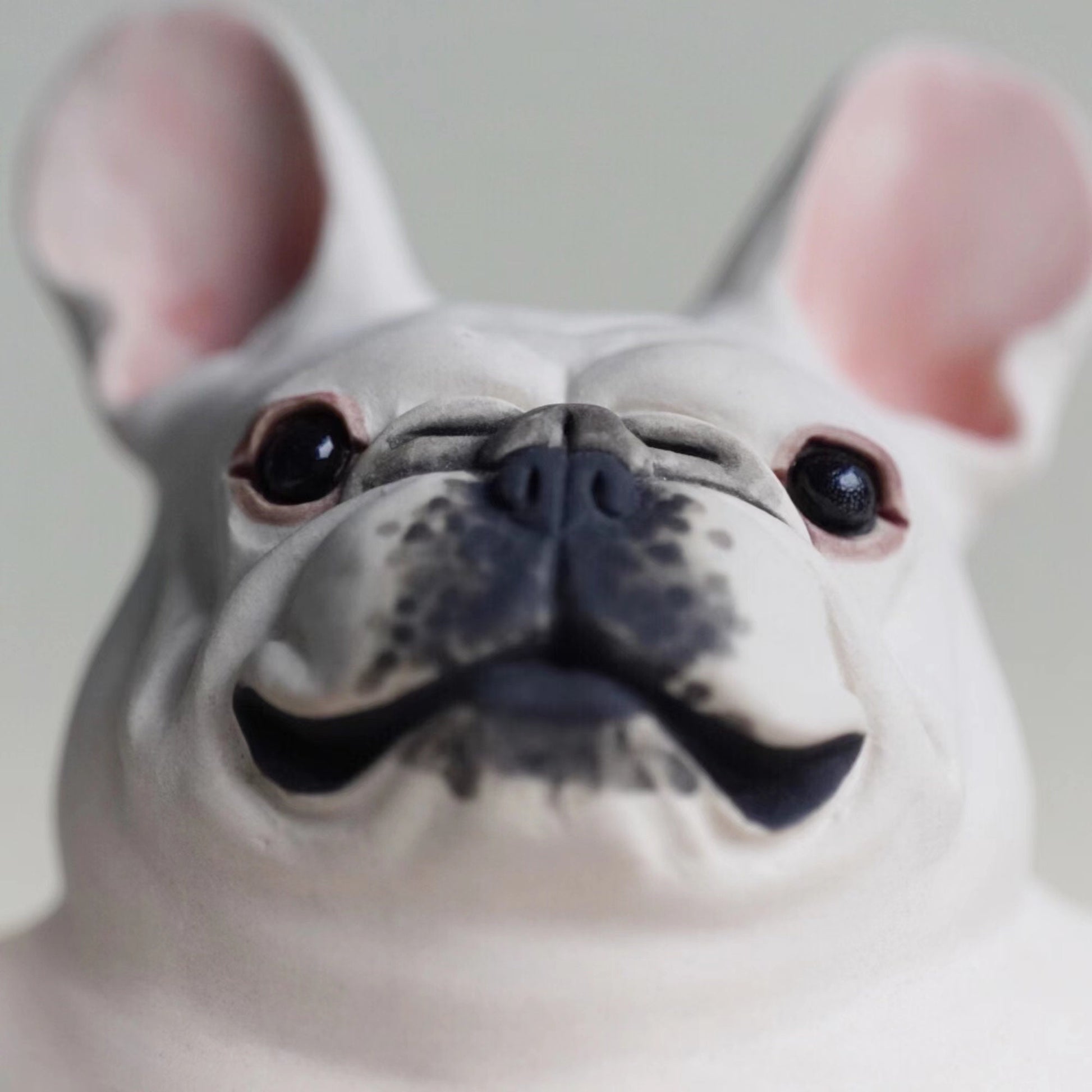Adorable 5-inch tall French Bulldog sculpture by LONG QUAN CELADON