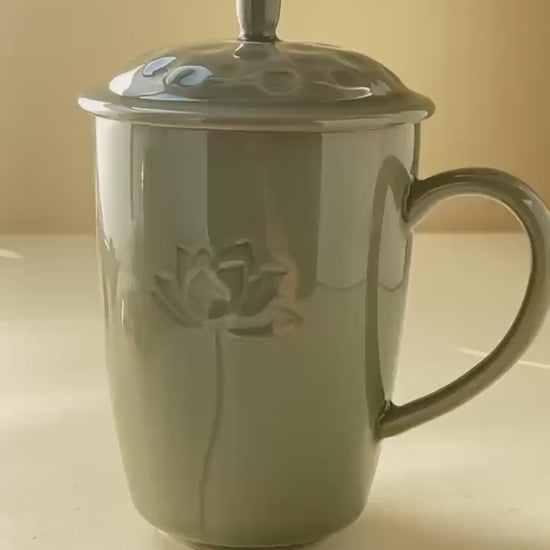 Lotus Ceramic Tea Mug with Lid for Steeping Loose Leaf Tea|Stoneware Yoga Meditation Mug|Great Gift Idea For Lotus Fans |Tea Gift